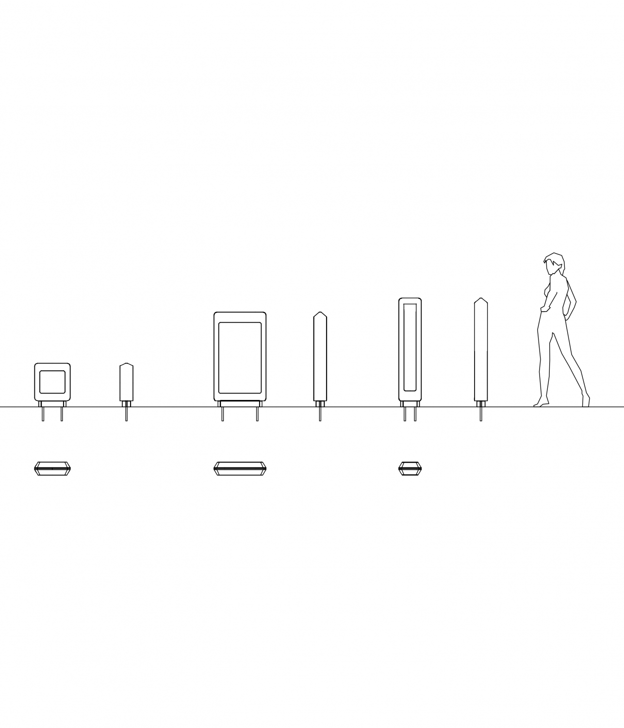 Fußgängerpoller – quadratische und rechteckige Geometrie. Hergestellt aus UHPC (Ultra High Performance Concrete).