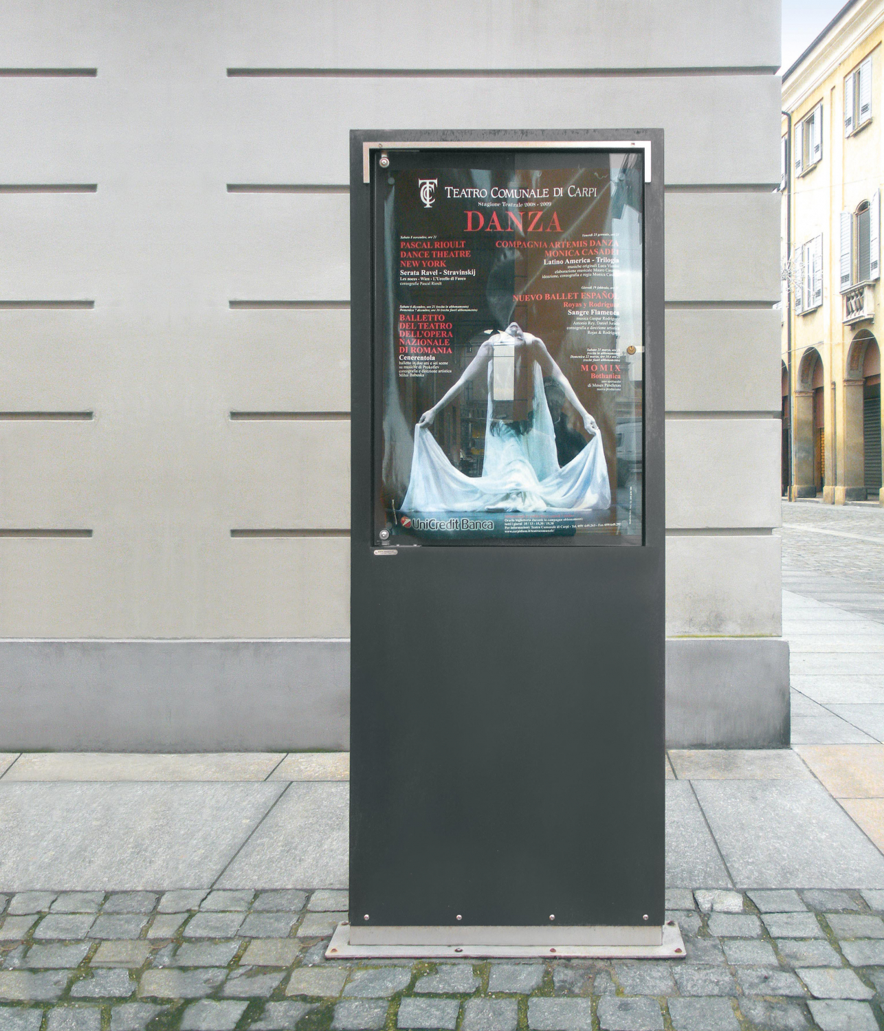 Informationsvitrine, doppelseitig, aus Stahlblech und Edelstahl Basis.