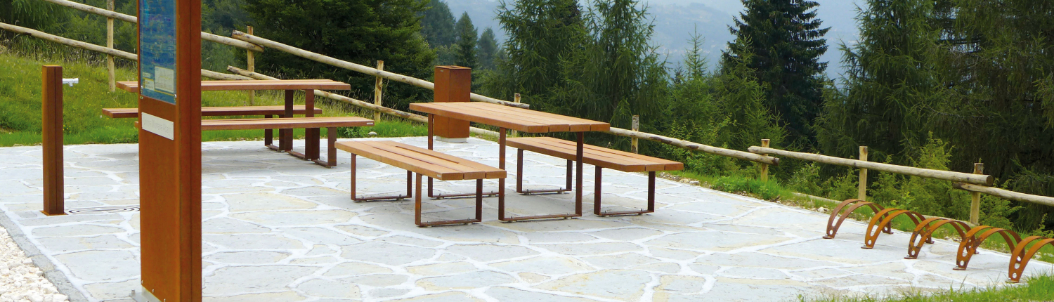 Grundsätzlich besteht jede Sitzgruppe bei Mobiliar im Freiraum aus feuerverzinktem Stahl, Edelstahl, pulverbeschichtetem Stahl und einer großen Auswahl an langlebigen Hölzern. Farbenvielfalt ist ebenfalls gegeben – sprechen Sie uns gern dazu an.