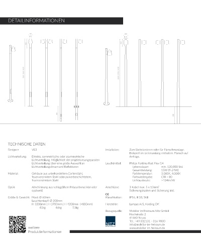 Größe & Gewicht: Mast: Ø 60mm Klassifikation: IP56, IK10, SKII