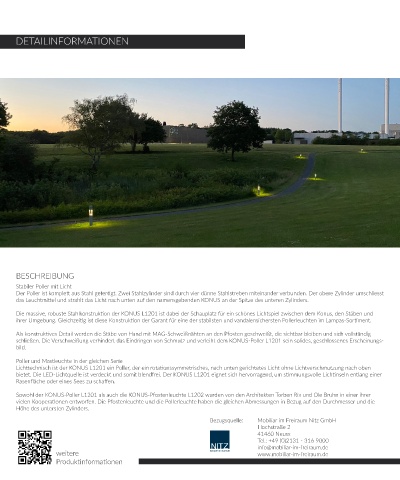 Sowohl der KONUS-Poller L1201 als auch die KONUS-Pfostenleuchte L1202 wurden von den Architekten Torben Rix und Ole Bruhn in einer ihrer