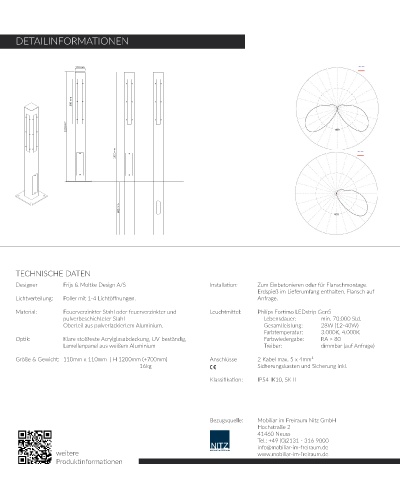 Größe & Gewicht: 110mm x 110mm | H 1200mm (+700mm) Anschlüsse 2 Kabel max. 5 x 4mm²