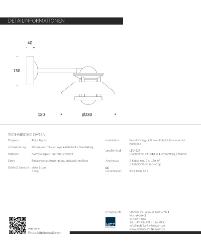 Material: Aluminiumguss, pulverbeschichtet Leuchtmittel ist nicht im Lieferumfang enhalten