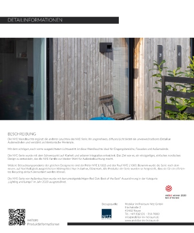 Die NYE-Serie von Außenleuchten wurde mit dem prestigeträchtigen Red Dot: Best of the Best“-Auszeichnung in der Kategorie