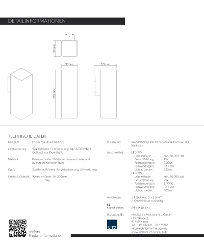 Größe & Gewicht: 90mm x 90mm | H 270mm Lebensdauer: min. 50.000 Std.