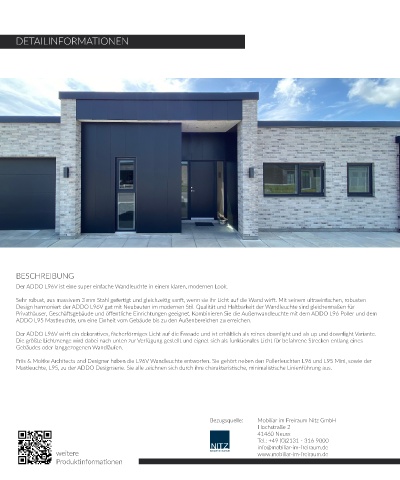 Design harmoniert der ADDO L96V gut mit Neubauten im modernen Stil. Qualität und Haltbarkeit der Wandleuchte sind gleichermaßen für