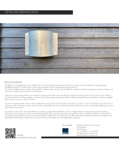 Die solide Materialauswahl und der robuste Stahlschirm unterstreichen die Einfachheit der Lampe. Die LIBER L5U ist ein Wandlicht, das sich nicht nur