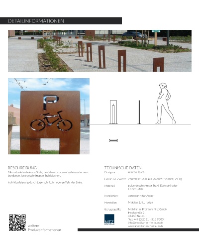 Fahrradanlehnstele aus Stahl, bestehend aus zwei miteinander ver- Designer: Alfredo Tasca