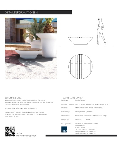 mit Zuschlagsstoffen aus Marmor). Größe & Gewicht: Ø 1500mm H 490mm (mit Sitzfläche) | 650 kg