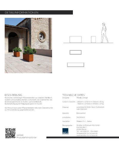 Klassischer, rechteckiger Pflanzenbehälter aus stabilem Stahlblech, Designer: Metalco Design