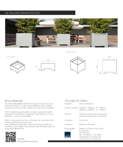 Das ESKE Pflanzgefäß ist einfach im Design und passt sich gut in Designer: Move Architecture