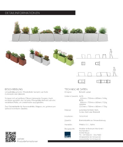 und Linien gestalten. Am Fuß jedes Pflanzgefäßes befindet sich eine BETA