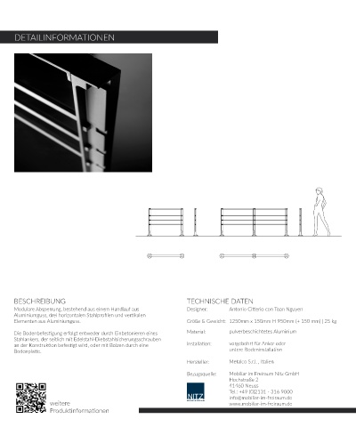 Elementen aus Aluminiumguss. Größe & Gewicht: 1250mm x 150mm H 950mm (+ 150 mm) | 25 kg