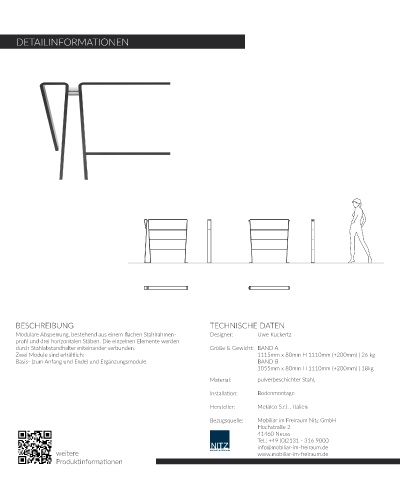 Zwei Module sind erhältlich: 1115mm x 80mm H 1110mm (+200mm) | 26 kg