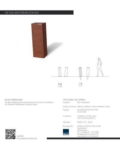 Schräger Fußgängerpoller mit quadratischem Sockel aus Stahlblech Designer: Pero Mezzapelle