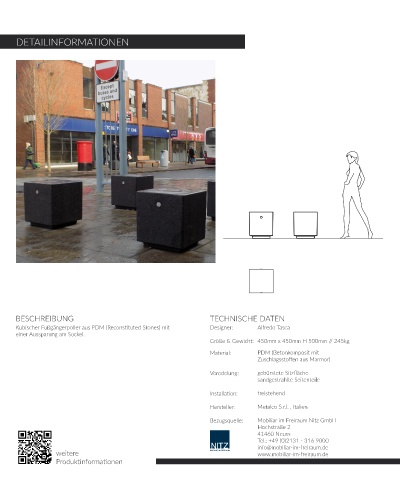 Kubischer Fußgängerpoller aus PDM (Reconstituted Stones) mit Designer: Alfredo Tasca