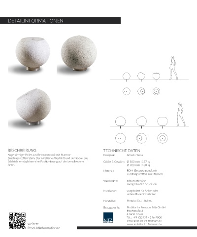 Kugelförmiger Poller aus Betonkomposit mit Marmor- Designer: Alfredo Tasca