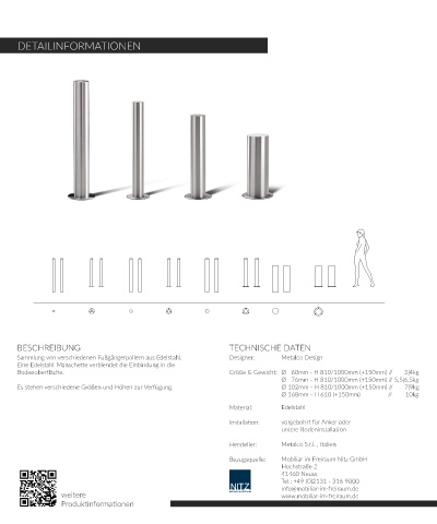 Sammlung von verschiedenen Fußgängerpollern aus Edelstahl. Designer: Metalco Design