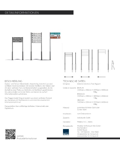 Informationstafeln auf. 1420mm x 200mm H 3590mm (+400mm)