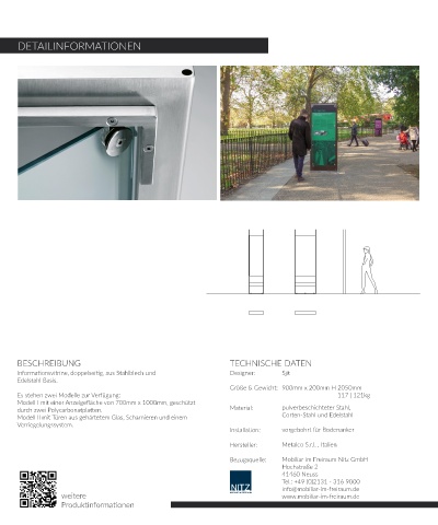 Informationsvitrine, doppelseitig, aus Stahlblech und Designer: Sjit