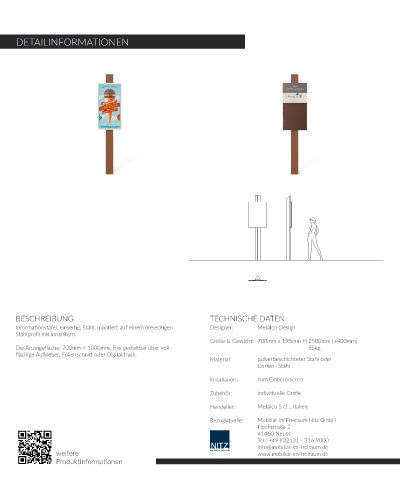 Informationstafel, einseitig, Stahl, montiert auf einem dreieckigen Designer: Metalco Design