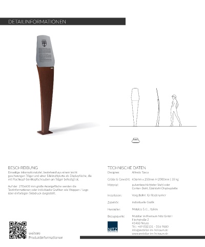 Einseitige Informationstafel, bestehend aus einem leicht Designer: Alfredo Tasca