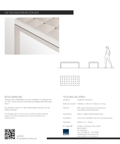 Sitzbank ohne Rückenlehne mit einer Sitzfläche im „Steppmuster“ Designer: Staubach & Kuckertz