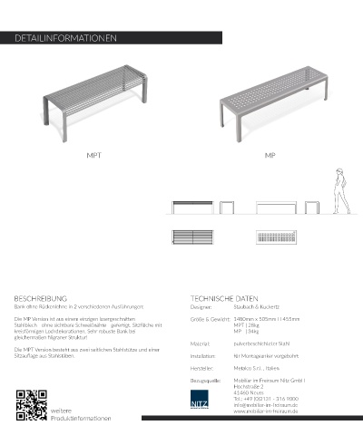 Bank ohne Rückenlehne in 2 verschiedenen Ausführungen: Designer: Staubach & Kuckertz
