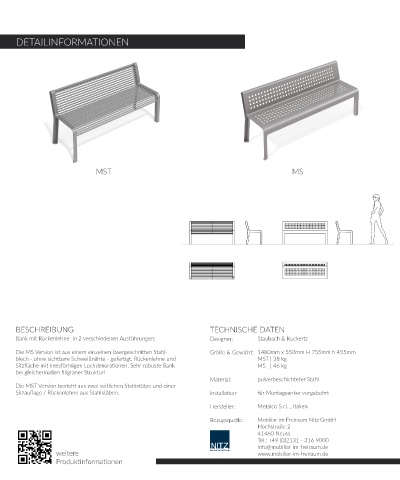 Bank mit Rückenlehne in 2 verschiedenen Ausführungen: Designer: Staubach & Kuckertz