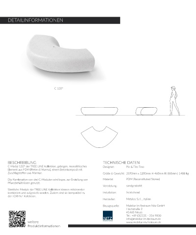 C-Modul 120° der TREE LINE Kollektion, gebogen, monolithisches Designer: Pio & Tito Toso