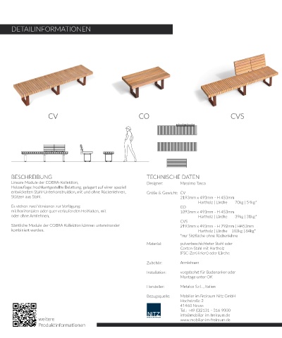entwickelten Stahl-Unterkonstruktion, mit und ohne Rückenlehnen, Größe & Gewicht: CV