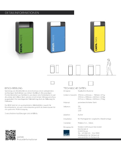 Einzelstandorte, als auch nebeneinander gestellt als Sammelpunkt für Volumen: 50l