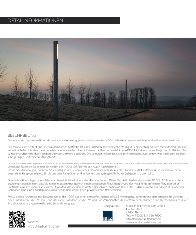 Friis & Moltke Architects and Designer haben die ADDO Leuchten entworfen. Neben der L95 Mastleuchte, gehören eine sehr interessante Variante